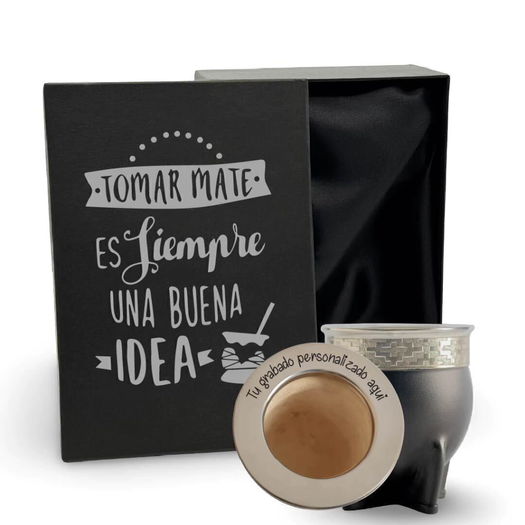 - Mate imperial de calabaza , forrado en cuero y virola de alpaca + personalizado + bombilla de acero pico de loro + caja de presentacion personalizada