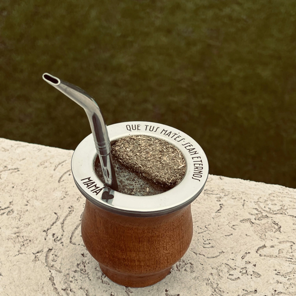Mate camionero de algarrobo , con virola de acero inoxidable, ideal para personalizados.