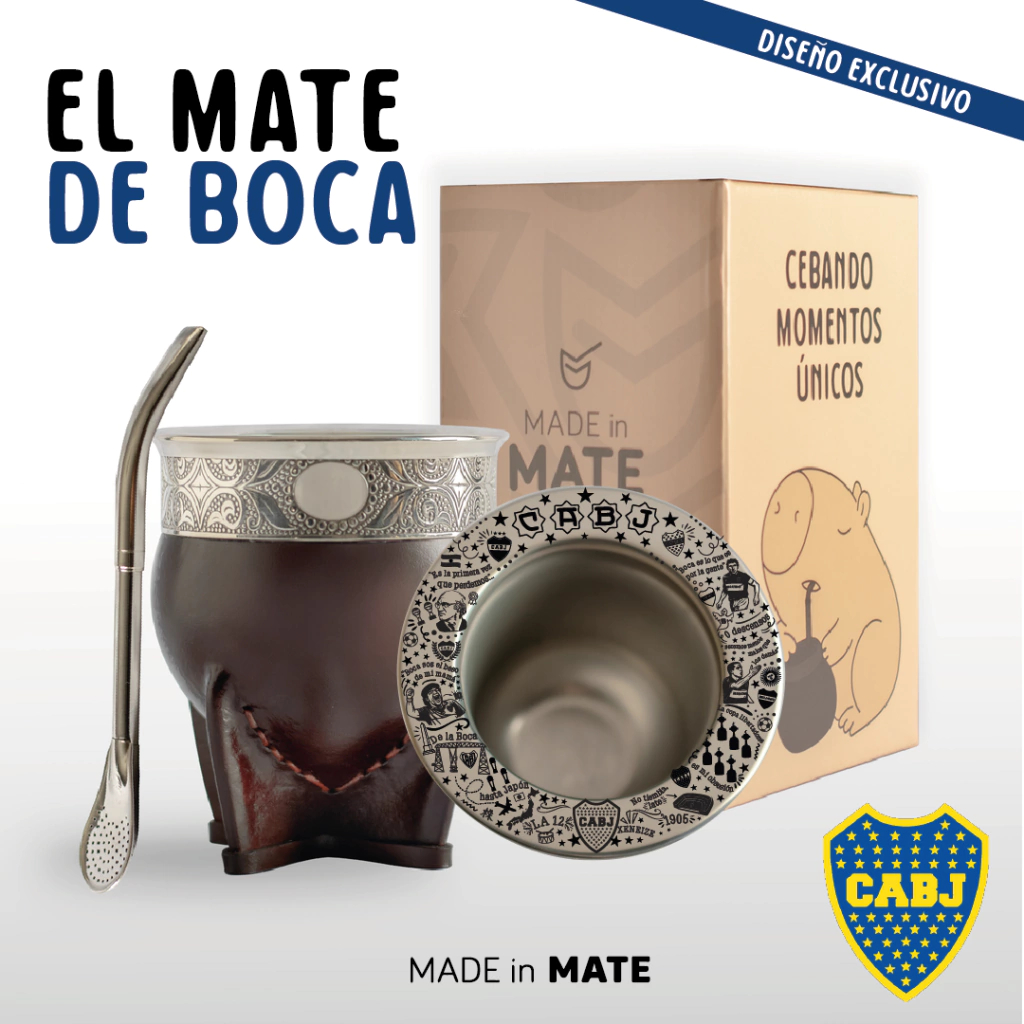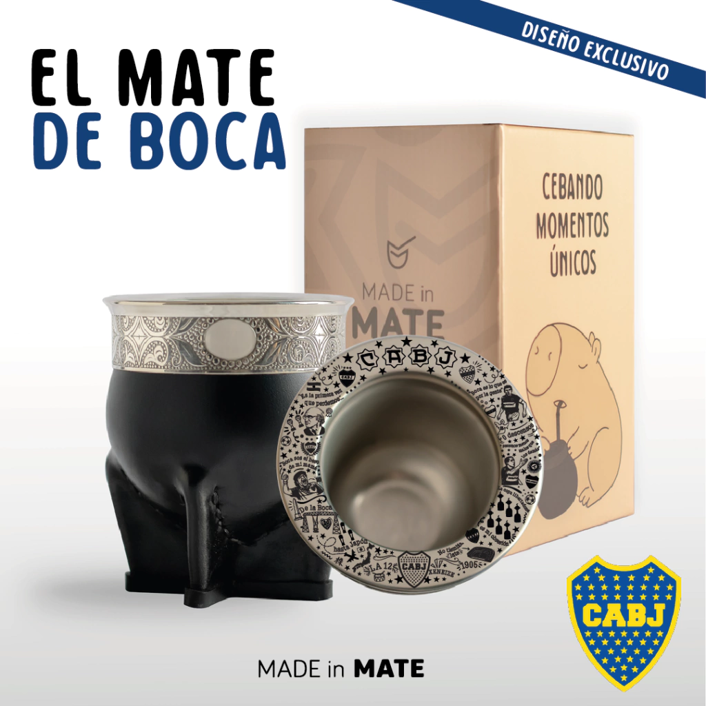 Mate imperial de acero, con guarda (sujeta a stock) y con virola de acero personalizada con una edicion exclusiva del Club Atletico Boca Juniors,